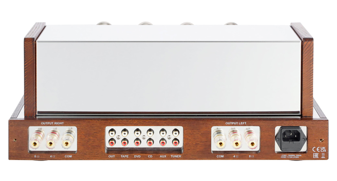 La potenza, grazie al quartetto di EL34 è di 2x35W in classe AB e in configurazione ultralineare, una scelta che punta a combinare la musicalità tipica delle valvole con una buona riserva di potenza e controllo, con volume gestito da un ottimo Alps, e ingressi (5) oltre a una barra di registrazione.