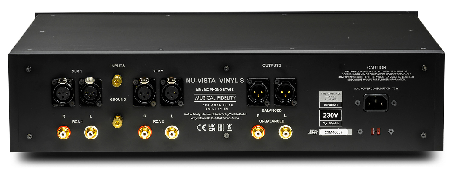 Musical Fidelity Nu-Vista Vinyl S è dotato di circuiti audio discreti e completamente bilanciati con tre stadi di guadagno a transistor in Classe A e stadio RIAA passivo con due stadi (split-passivo) a garanzia di una più accurata curva di equalizzazione.